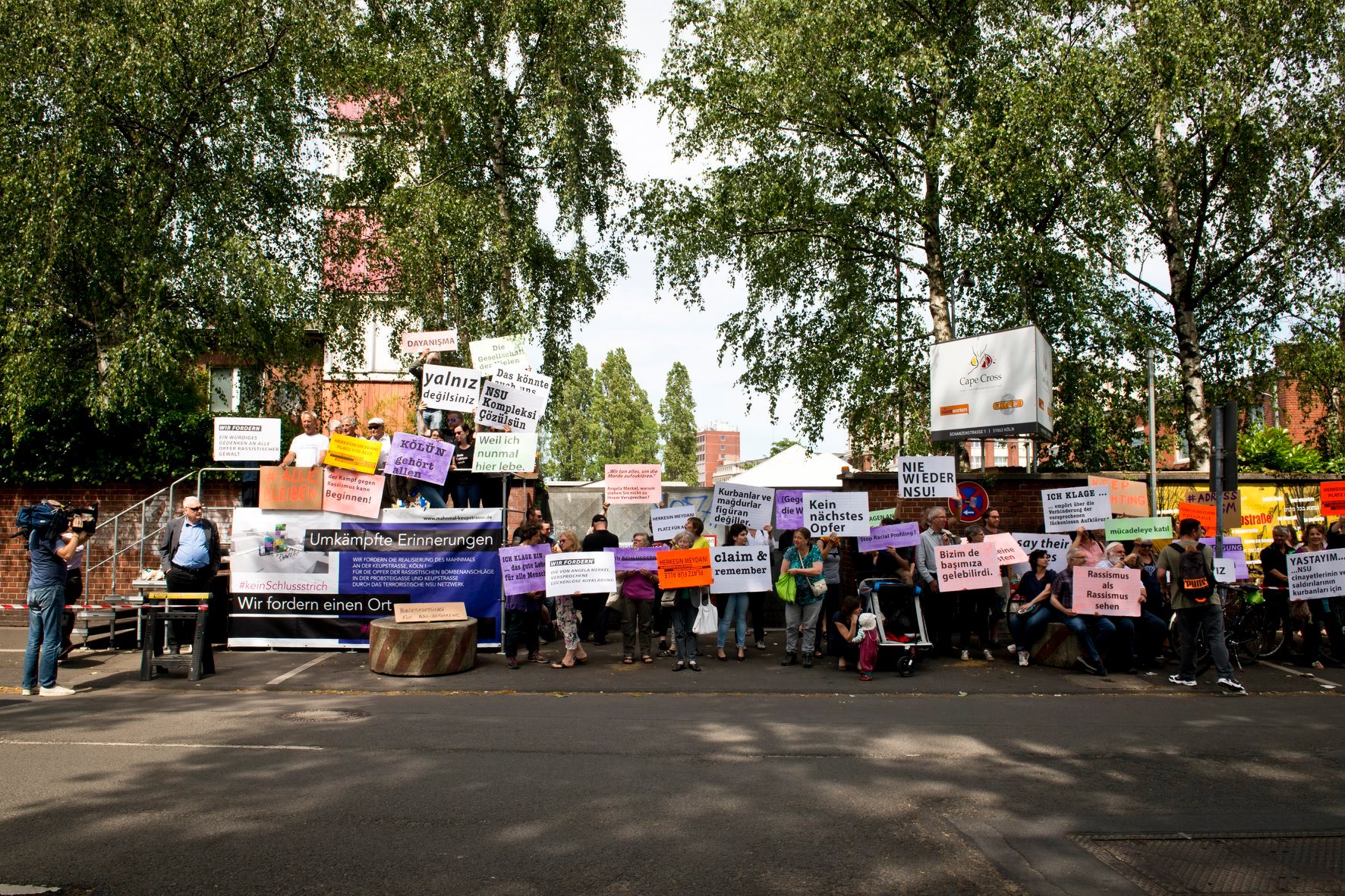 Der Weg dorthin war lang. Bereits nach dem Tribunal „NSU-Komplex auflösen" 2017 in Köln hatte die Kölner Tribunalgruppe das Mahnmal zum Schwerpunkt ihrer Arbeit gemacht. Gemeinsam mit der Interessengemeinschaft Keupstraße und der Initiative „Keupstraße ist überall" lud sie den Sprecher der Investorengruppe im März 2018 zu einer Podiumsdiskussion mit dem Pädagogen und Publizisten Micha Brumlik und dem Künstler Ulf Aminde ins VHS-Forum im Rautenstrauch-Joest-Museum. Weil die Eigentümerinnen absagten, blieben die Befürworterinnen des Mahnmals unter sich und so fiel der öffentliche Streit aus. Im Jahr darauf initiierte Aminde gemeinsam mit anderen Künstler*innen und Kulturschaffenden aus dem In- und Ausland einen Offenen Brief an Kölns Oberbürgermeisterin Henriette Reker. Doch auch dieser Appel blieb ungehört.