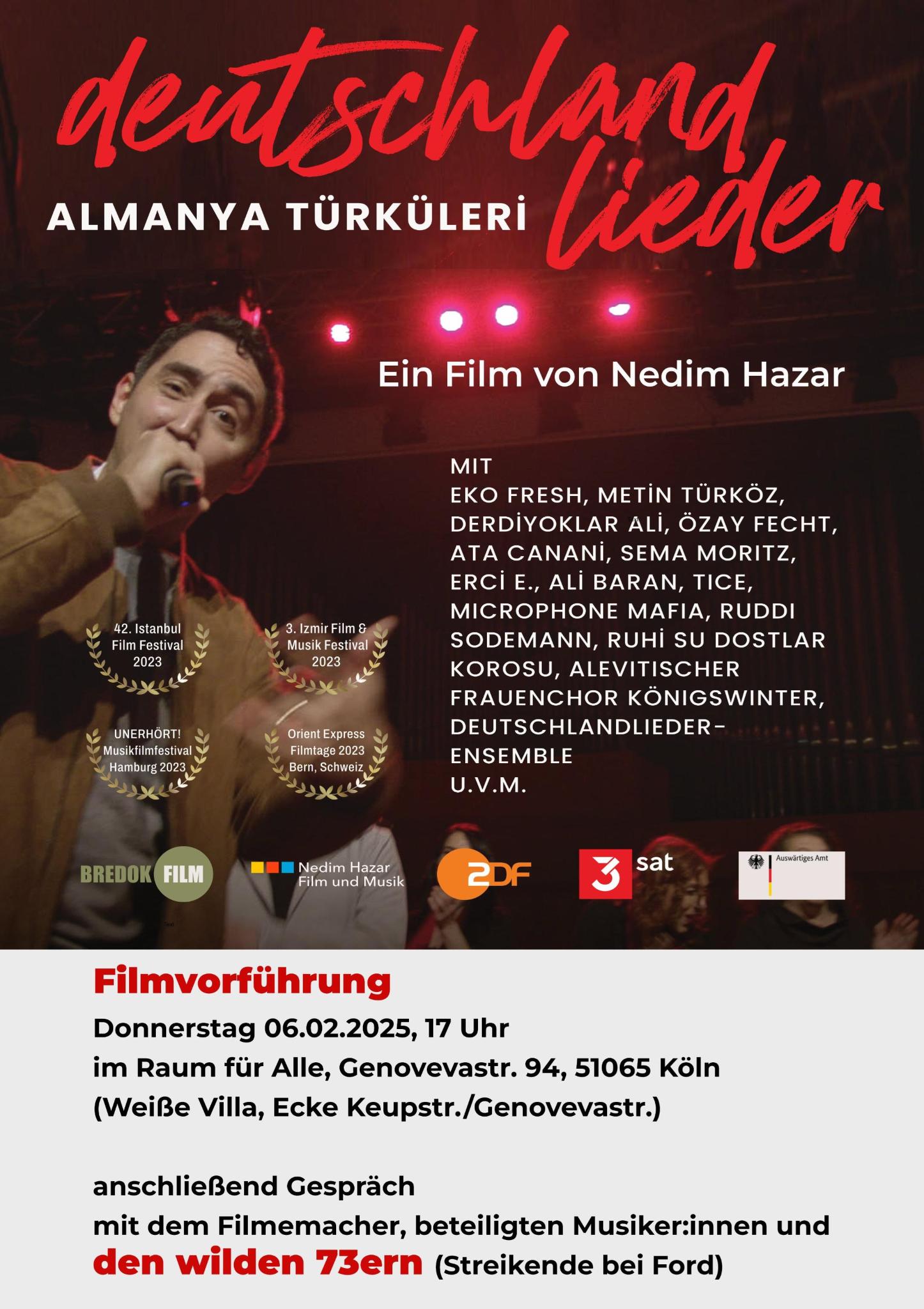 Almanya Türküleri Deutschlandlieder Filmvorführung und Gespräch Donnerstag, 06.02.2025 17:00 Uhr Raum für alle, Genovevastr. 94, Köln